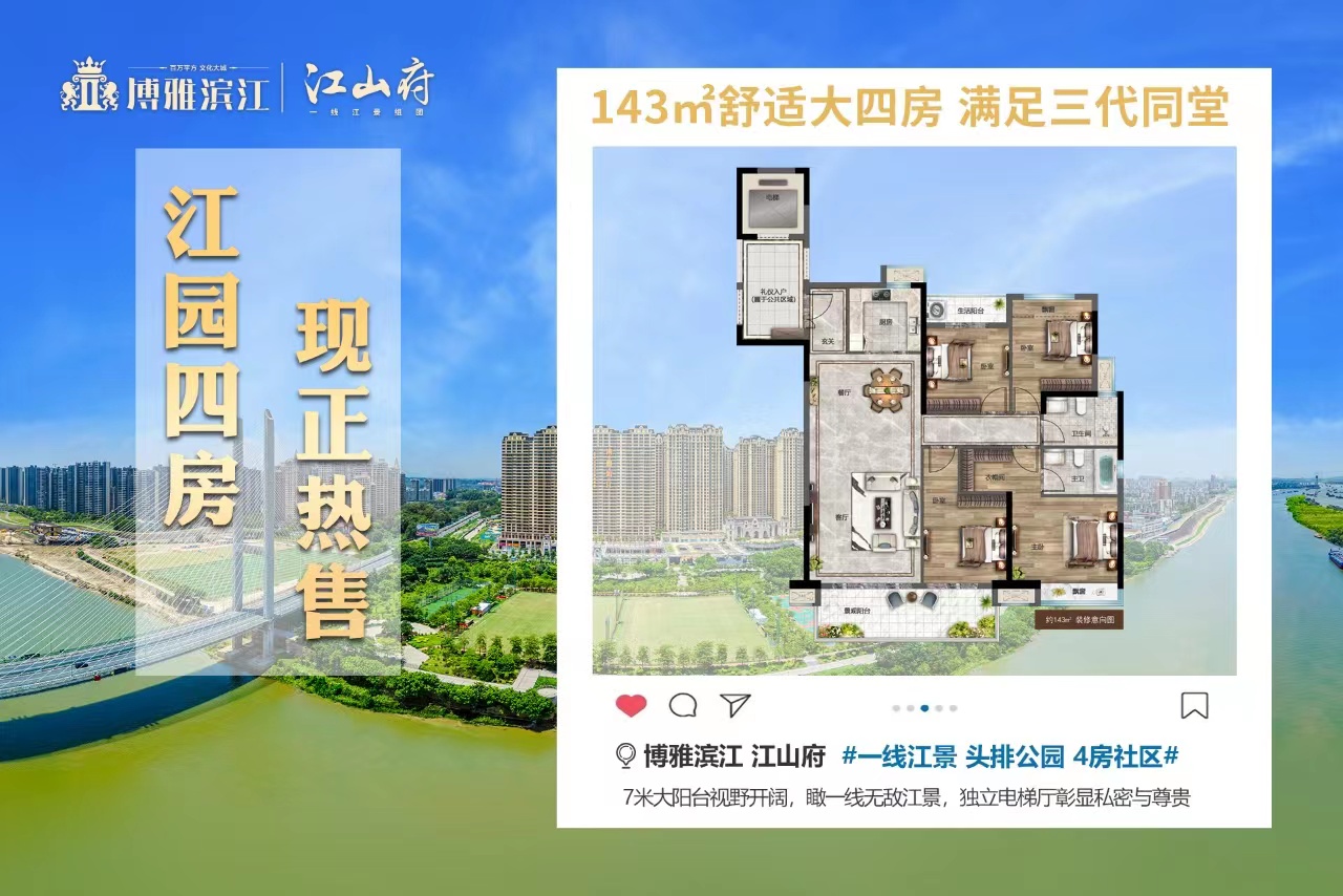 博雅滨江项目就是佛山北大资源地产有限公司在广佛地区打造的第一个新文化社区样板项目。项目位于佛山市三水城区核心地段,西南街道文峰西路,三达路南侧花果山。规划用地约200亩,总建面积约90万㎡,是三水中心城区规模最大的项目。项目主要核心价值包括: 1.区域价值优势:项目地处中心城区,交通便利、生活配套成熟、城市基础配套丰富; 2.地块价值优势:江边龟背地块,难得一遇的风水宝地;得天独厚的城市居住平台;90万㎡城区大盘,能真正做到出则繁华,入则宁静。 3.景观资源优势:项目拥有460米江景线,临江面开宽,无遮挡无干扰;南面独享300亩滨江公园配套 4.品质产品优势:纯法式风格建筑、超低密度高层洋房、高舒适性的户型空间,打造房地产4.0时代商品房样板的各样优势。四期产品更是在前三期的基础上作了四大品质提升,包括建筑、外立面、园林和户型四大方面。 ①建筑提升,四期产品采用全点式规划设计,实现户户单边,以此来保证每户的采光、通风最合理化。楼栋间距宽,居住舒适性好,各楼栋设计为南偏东15度黄金角度,以确保最大程度上户户望江、家家看湖,将项目湖景及江景资源尽最大化呈现。 ②外立面提升,四期产品的每栋入户大堂作了提升,使入户大堂更具仪式感;外立面线条设计变得更加简洁,使整体风格更时尚大气,同时减少法式结构柱子,从内向外看的视野变得更加宽阔,室内采光变得更充足。 ③园林提升,四期的园林设计是采用皇家四重园林设计,它最大的设计亮点就是巧妙用十字轴规划,南北方向打造尊贵礼仪轴,打造4个不同主题园林组团,其中包括星辰广场主题、梦游仙境主题、镜中奇遇主题和空中之森主题。四期园林的设计充分利用项目的优势,园林中的湖泊都是引流北江活水打造而成的,您平时可以在小区里“边赏花、边散步”。 ④户型升级,四期户型设计秉承着注重客户使用体验,我们四期产品的户型拥有四大亮点,包括礼仪入户玄关(在门口位置预留了对联和门馆的位置)、超级阳台(最长景观阳台长度近6米)、可拓展空间集中(空中花园可改为卧室/书房)、等宽餐客厅设计(室内空间通透明亮,紧密的餐厨设计)。 5.资源整合优势:博雅滨江项目通过整合北京大学及方正集团优势产业资源,结合佛山区域以及三水本地的历史人文,着力打造体现博雅滨江新文化社区的九大配套。社区九大配套包括: ①博雅文化广场——文化融入生活 约8000m2超大规模,串联新文化中心、雕塑艺术长廊、