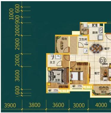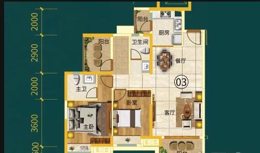 餐厅:客厅餐厅精致一体,营造阔绰空间感 卧室:主卧套房设计,配备独立卫浴设计,小空间大尺度 阳台:超宽阳台紧连客厅,空间运用更自由