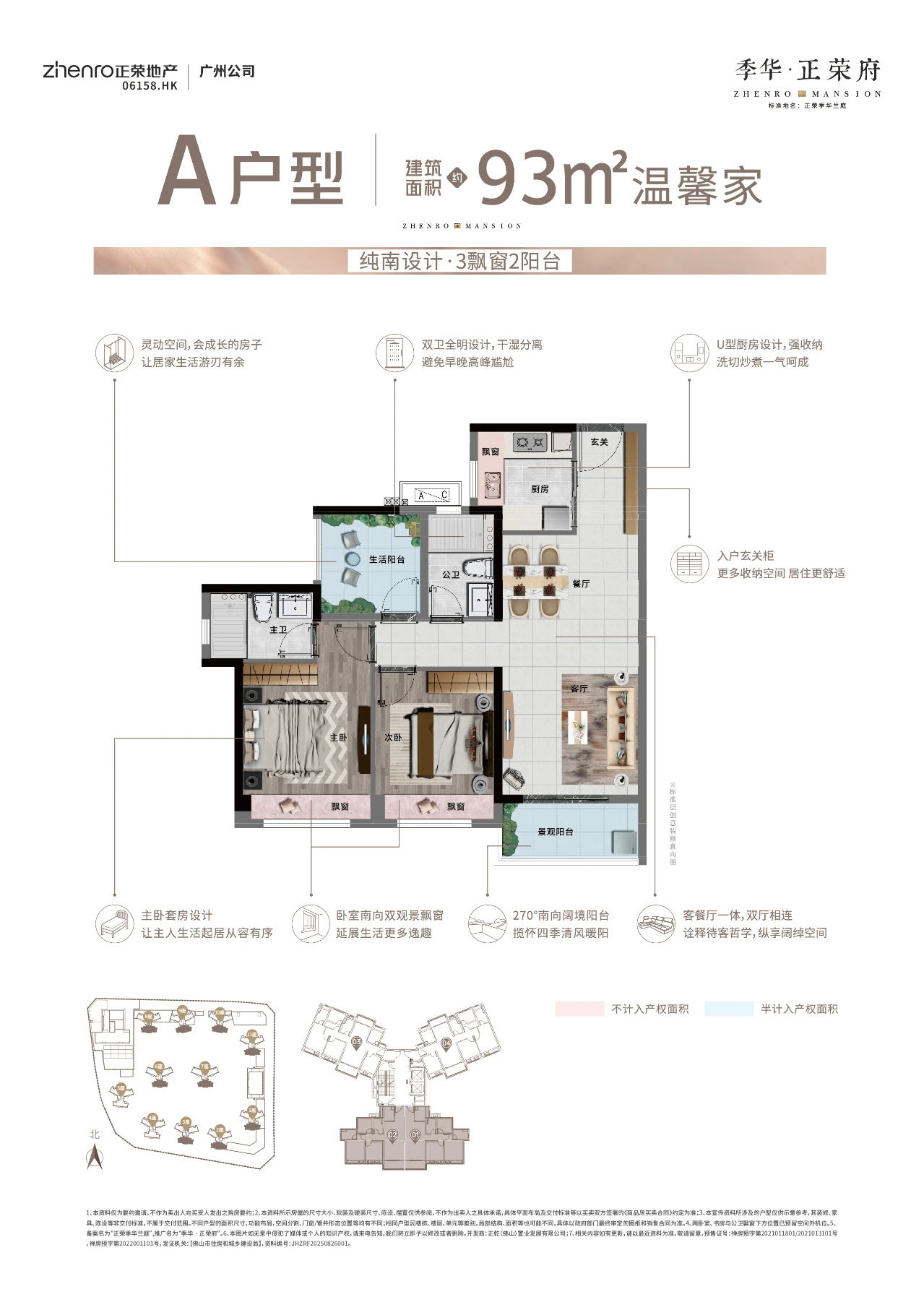 建面约93㎡ 户型亮点 ①客餐厅、景观阳台相连,户户朝南; ②南向3开间(1客厅2卧室),全景飘窗设计 ③3飘窗2阳台设计,使用率高达️️90%。