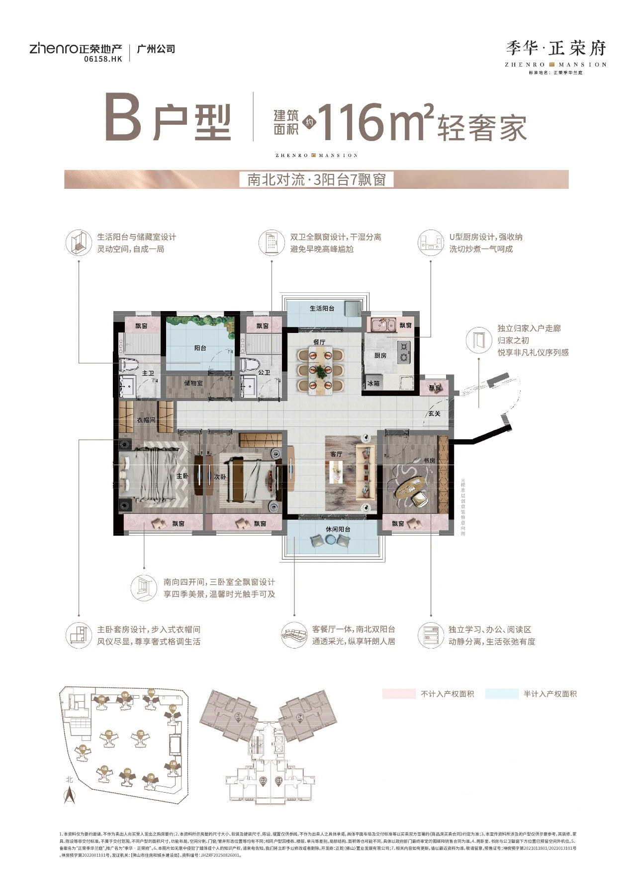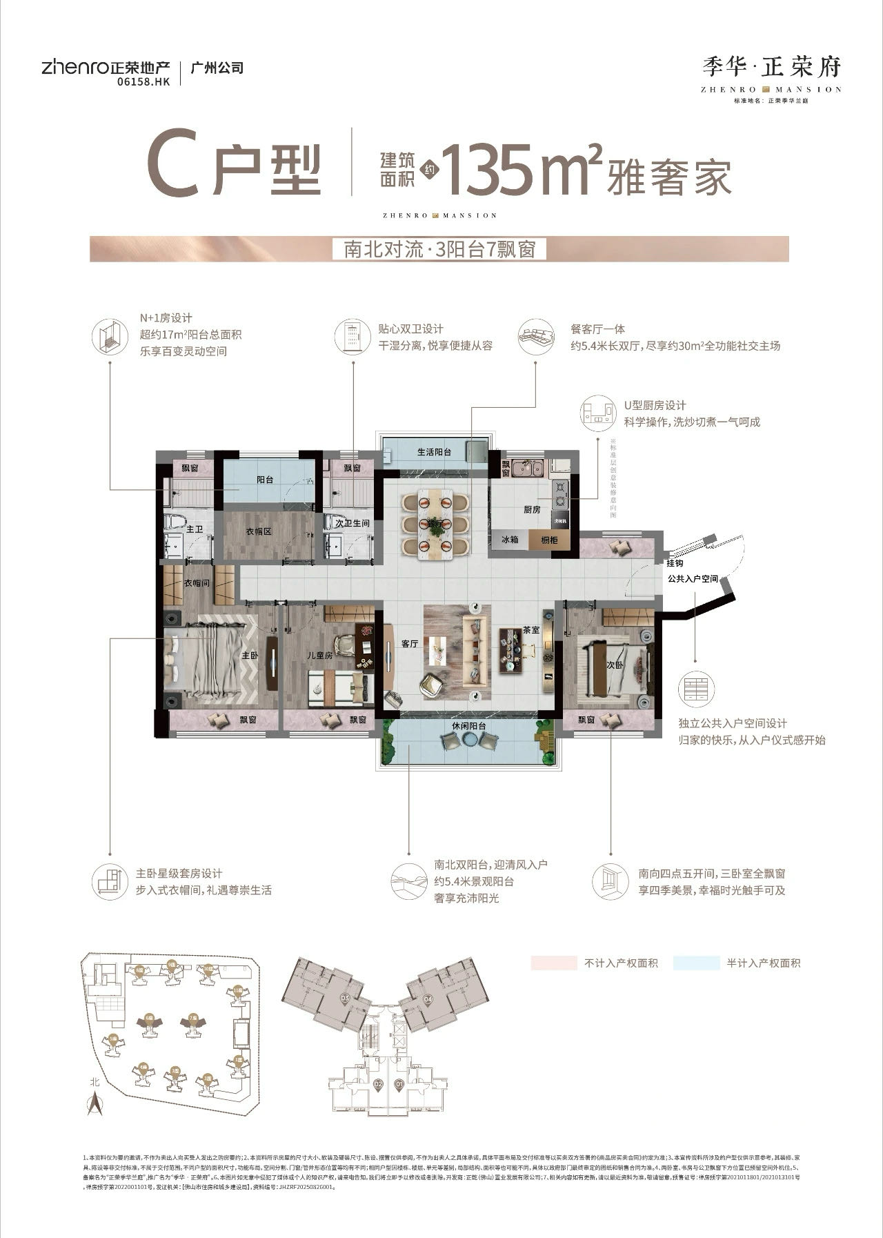 ①双玄关入户,南北对流双阳台设计; ②5.4m超大开间客厅功能多样,餐厨空间灵动多变; ③南向5开间(大横厅3卧室),全景飘窗; ④3阳台7飘窗,实际使用率超9⃣️4⃣️%。 ⑤主卧大套间,居住更舒适,配置衣帽间,收纳极致。