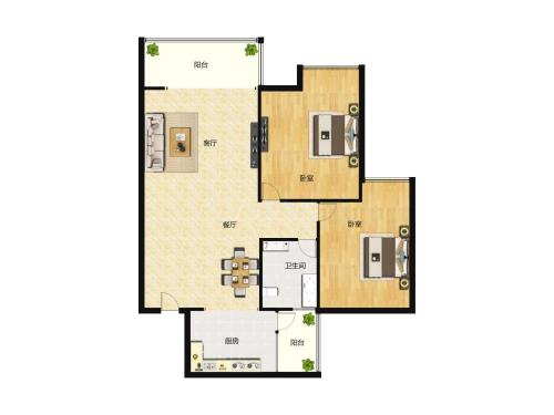 空间信息 【采光&通风】1.有飘窗,扩充了室内空间,增加改造灵活性。【功能空间配置】1.明厨,保证厨房采光和通风,烹饪时油烟不会污染室内环境。2.明卫,保证卫生间采光和通风,不易滋生细菌。3.有晾晒衣物的阳台。【布局】1.卫生间居中,位置不合理。 优势 【采光&通风】1.有飘窗,扩充了室内空间,增加改造灵活性。,【功能空间配置】1.明厨,保证厨房采光和通风,烹饪时油烟不会污染室内环境。2.明卫,保证卫生间采光和通风,不易滋生细菌。3.有晾晒衣物的阳台。 不足 【布局】1.卫生间居中,位置不合理。