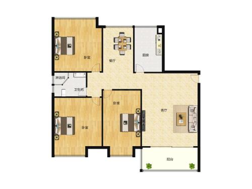 空间信息 【采光&通风】1.有飘窗,扩充了室内空间,增加改造灵活性。【布局】1.有两个卫生间,可供三口之家同时洗漱。2.主卧带卫,保证业主隐私,增加居住便利性。【功能空间配置】1.有晾晒衣物的阳台。【布局】1.卫生间居中,位置不合理。 优势 【采光&通风】1.有飘窗,扩充了室内空间,增加改造灵活性。,【布局】1.有两个卫生间,可供三口之家同时洗漱。2.主卧带卫,保证业主隐私,增加居住便利性。,【功能空间配置】1.有晾晒衣物的阳台。 不足 【布局】1.卫生间居中,位置不合理。