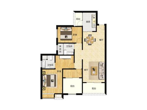 户型方正,动静分区,干湿分离,功能分区合理,有利于后期使用