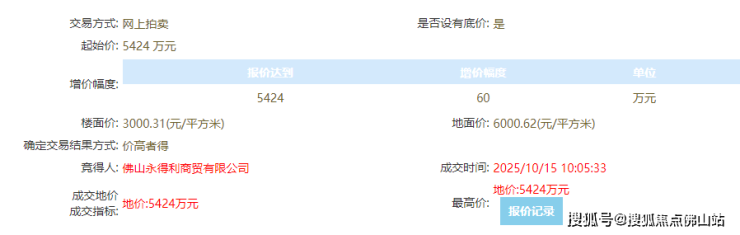 竞得人为佛山永得利商贸有限公司,背后实际控股人为佛山市高明区国有资产监督管理局,带有国企背景,旗下开发有佛山九峯台项目,就在项目旁边,该盘同步发出拿地喜报,或为九峯台扩容地地块。