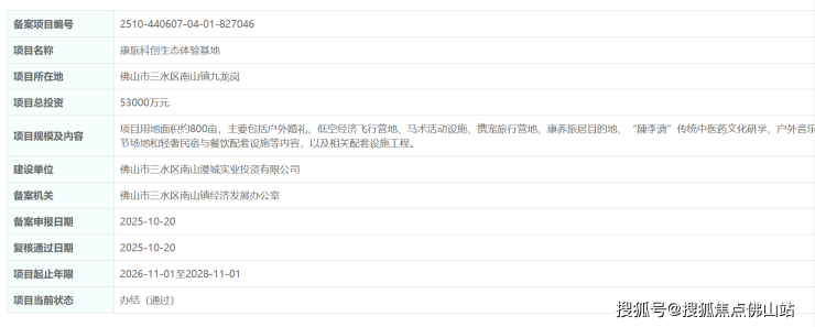 广东省投资项目在线审批监管平台显示,康旅科创生态体验基地通过备案。