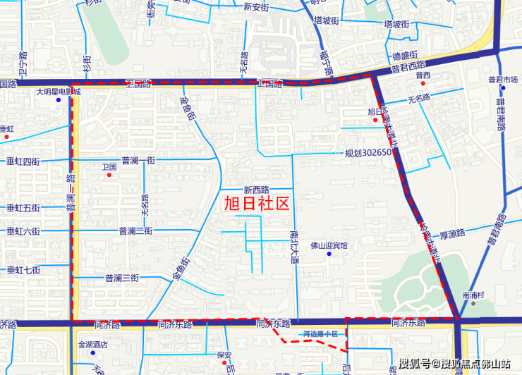 五、调整旭日社区居民委员会范围,撤销卫国社区居民委员会。调整后的旭日社区居民委员会,管辖范围由原旭日社区居民委员会、原卫国社区居民委员会组成,即东至岭南大道北,南至同济路、同济东路,西至普澜一路,北至卫国路,另加河边路小区。社区居民委员会办公地址设在禅城区祖庙街道岭南大道北6号104、204(沿用原旭日社区居民委员会办公地址)。