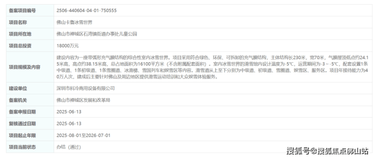 结合此前的备案信息可知,该冰雪训练基地正是佛山卡鲁冰雪世界。