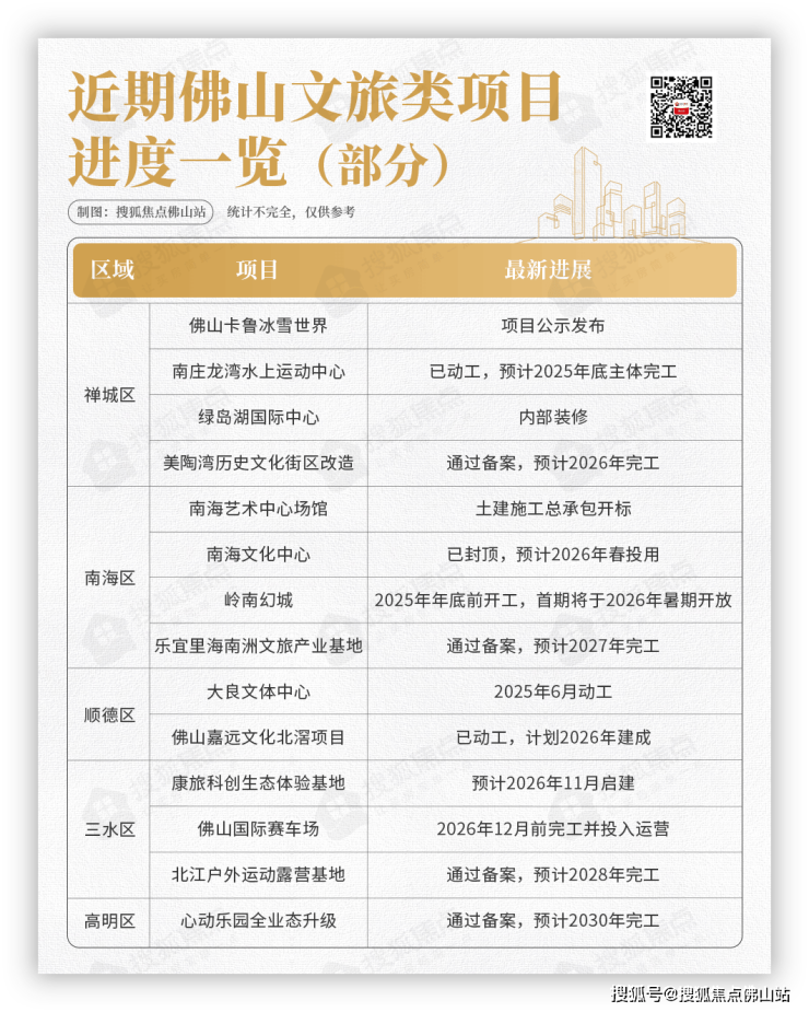 美陶湾历史文化街区改造、岭南幻城、佛山国际赛车场、佛山卡鲁冰雪世界等项目也将于明年竣工、投用。