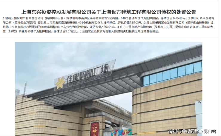 近日,阿里资产平台发布了上海东兴投资控股发展有限公司关于上海世方建筑工程有限公司债权的处置公告。