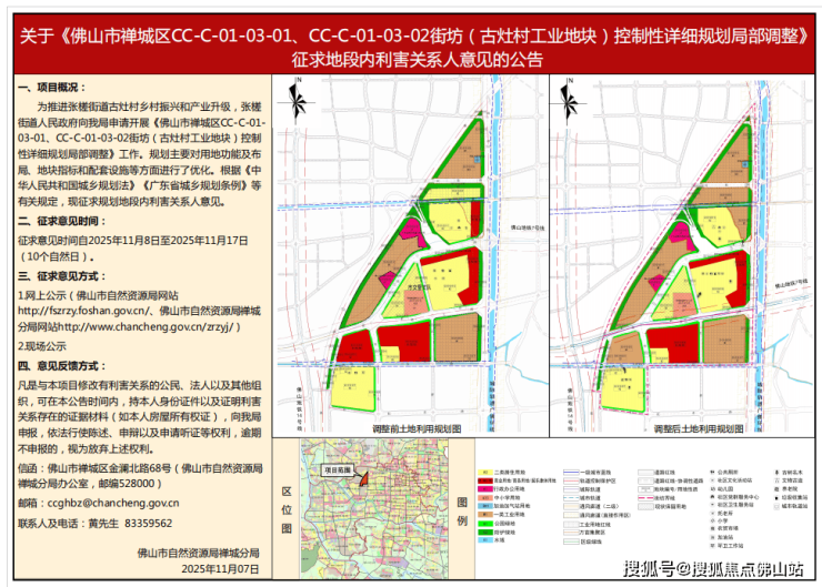 近日,佛山市自然资源局发布关于进行《佛山市禅城区CC-C-01-03-01、CC-C-01-03-02街坊(古灶村工业地块)控制性详细规划局部调整》公示的通告。