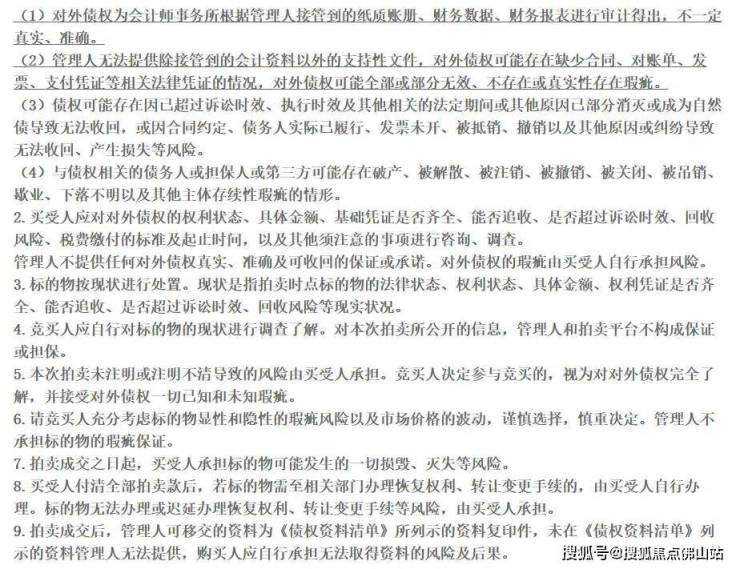 公告中还强调,此次拍卖标的情况较为复杂,拍卖标的以其现状为准,法院与管理人不承担拍卖标的的瑕疵保证,请竞买人慎重考虑并承担风险。