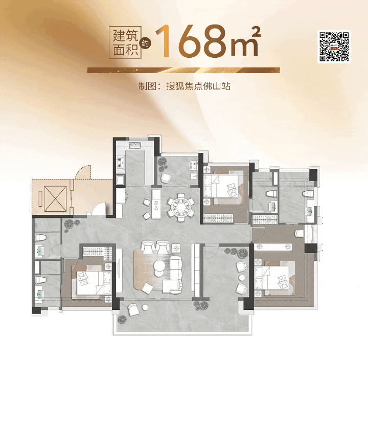 桂城红盘宏宇瓏熙采用超新规设计,其168㎡首创多套房布局,使用率超120%。