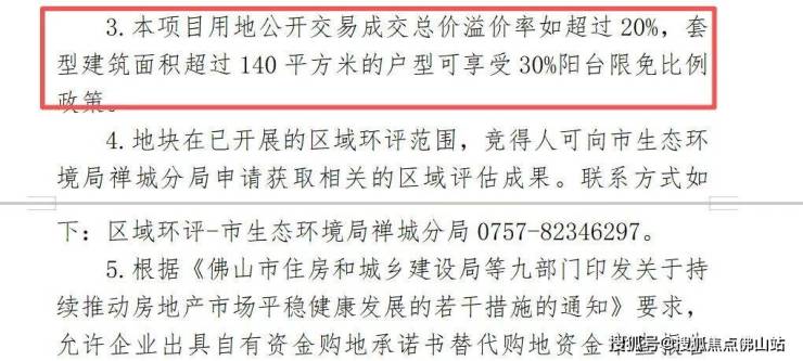 1.项目用地公开交易成交总价溢价率如超过20%,套型建筑面积超过140㎡的户型可享受30%阳台限免。