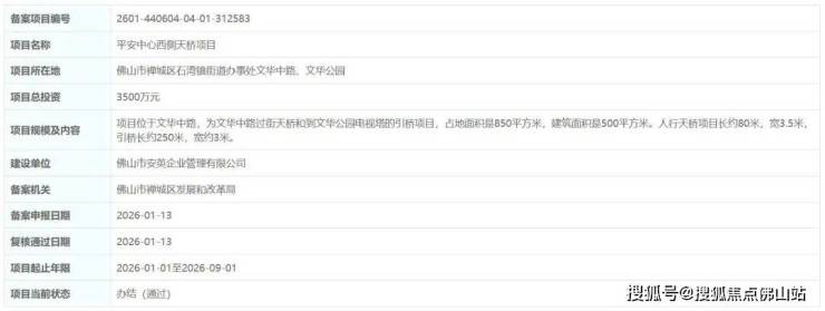 目前平安中心西侧天桥项目已备案通过。