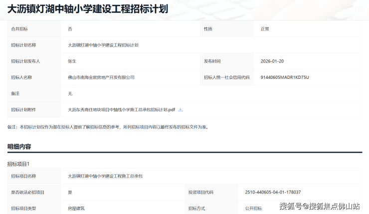 近日,大沥镇灯湖中轴小学建设工程发布施工总承包的招标计划,发包价为23087.1万,拟将于2月20日正式发布招标公告。