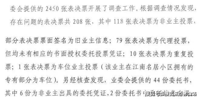经审理,法院指出,本次选举将仅拥有摩托车位、汽车车位或杂物房的产权人也计入了投票权基数,这种做法直接导致了总票数相较于往年异常激增800多票,法院认为这“显然不合常理”。