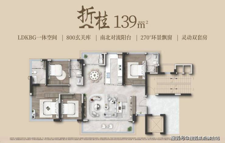 其中139㎡户型为四房两厅,采用双主套设计,约6.7米南向LDKBG一体化宽厅,连接南北双对流阳台。